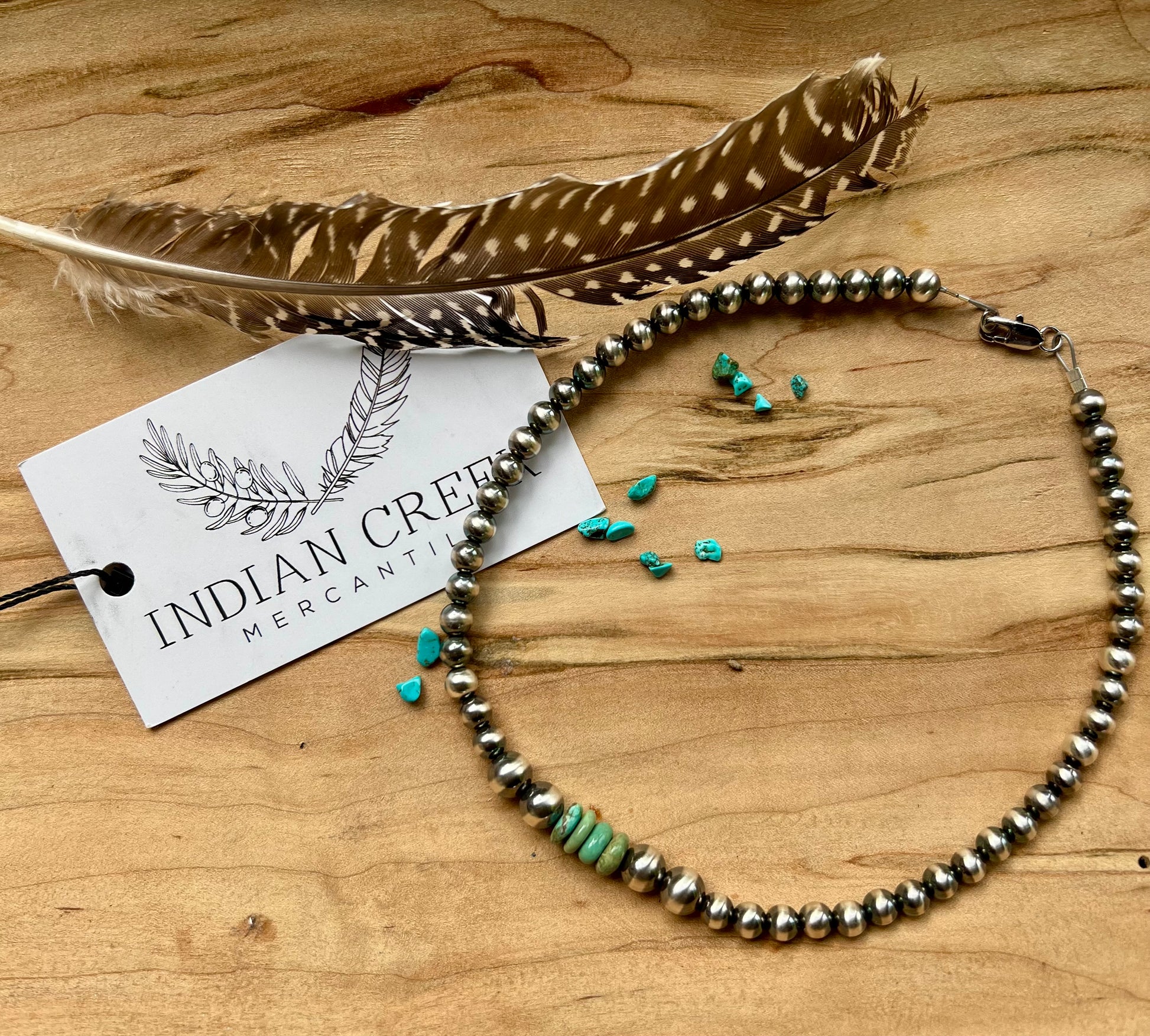 14” Sterling Pearl with Turquoise Disk Bead Choker Necklace