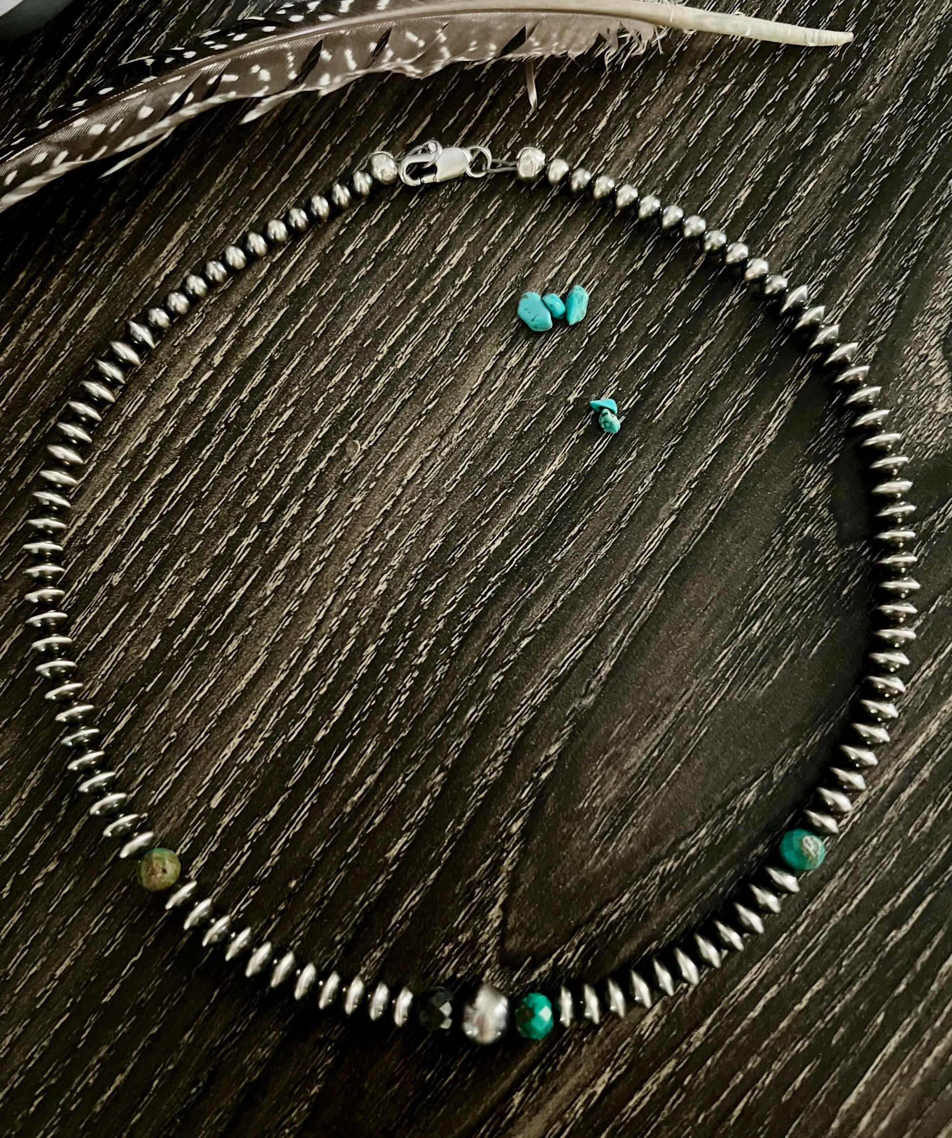 16” Saucer and Round Sterling Pearl Necklace with Turquoise Ombré Beads