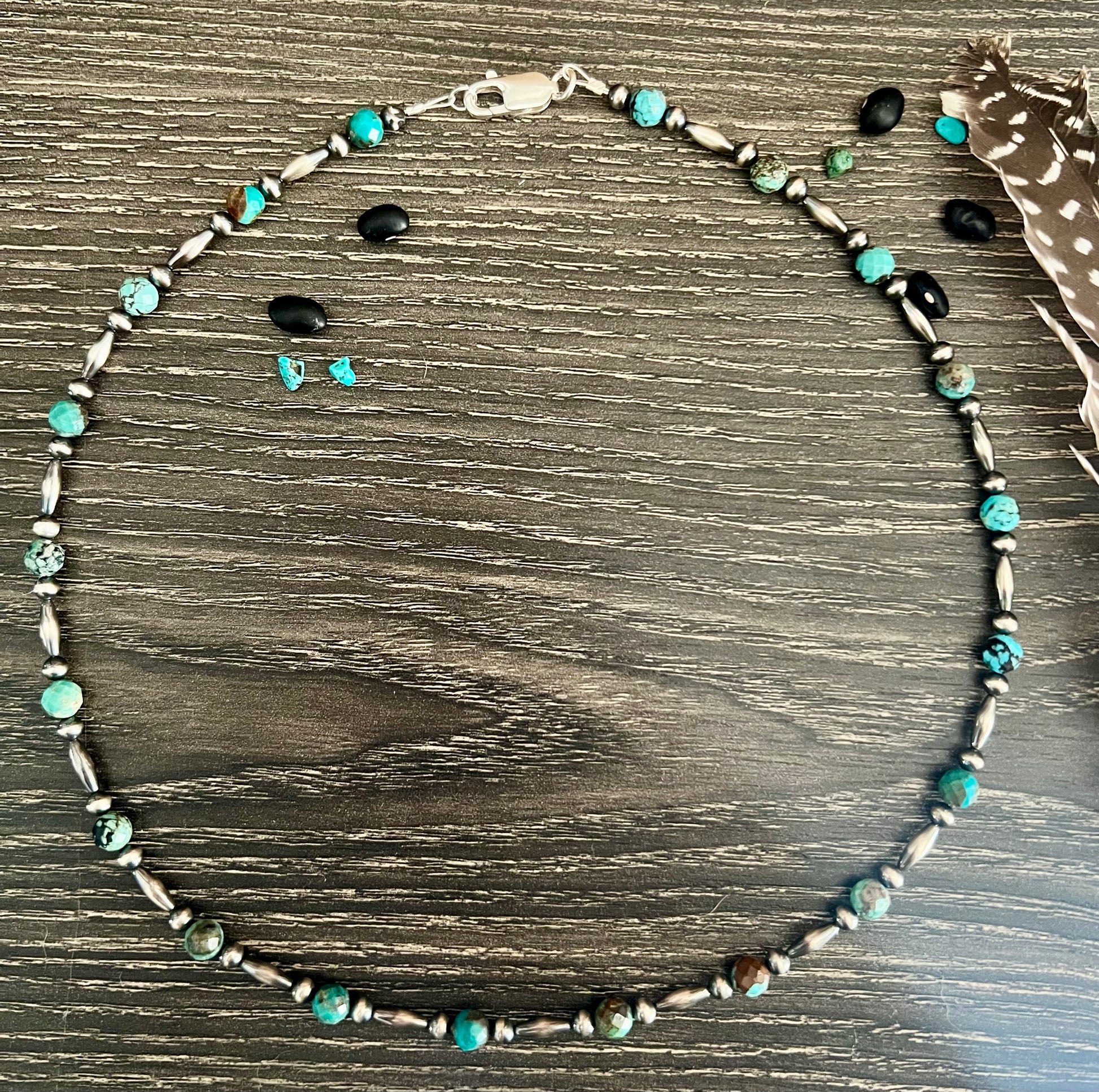19.5” Sterling Torpedo and Round Bead Necklace with Microfaceted Ombré Turquoise