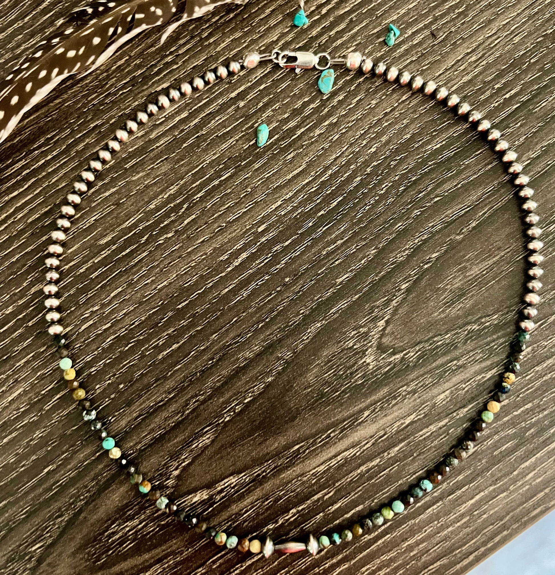 4mm Sterling Pearl Necklace with Turquoise Ombré