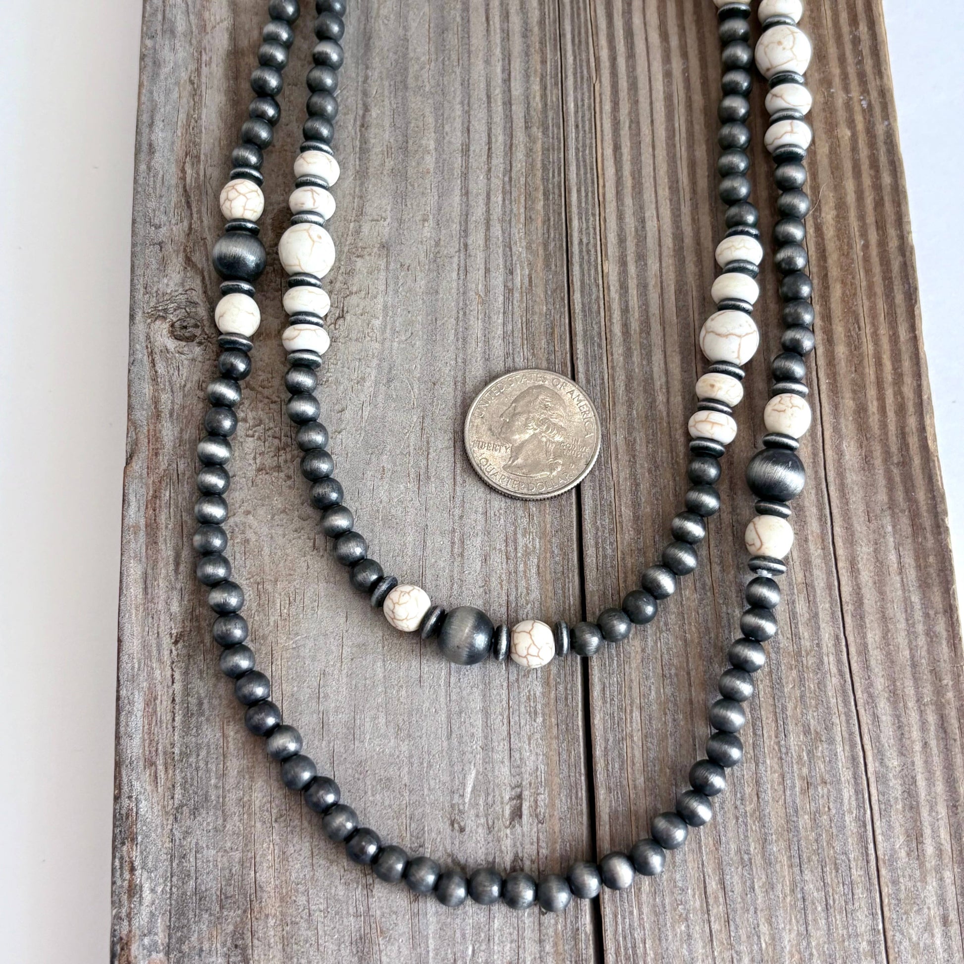 60″ Western Navajo Style Pearl & Stone Bead Long Necklace