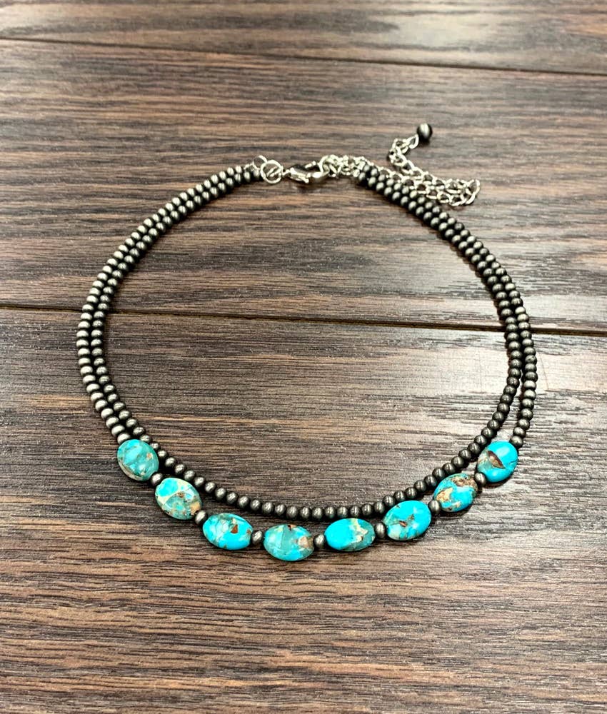 15" to 20" Long, Handmade 2-strand Small Oval Gemstone, Navajo Bead Necklace