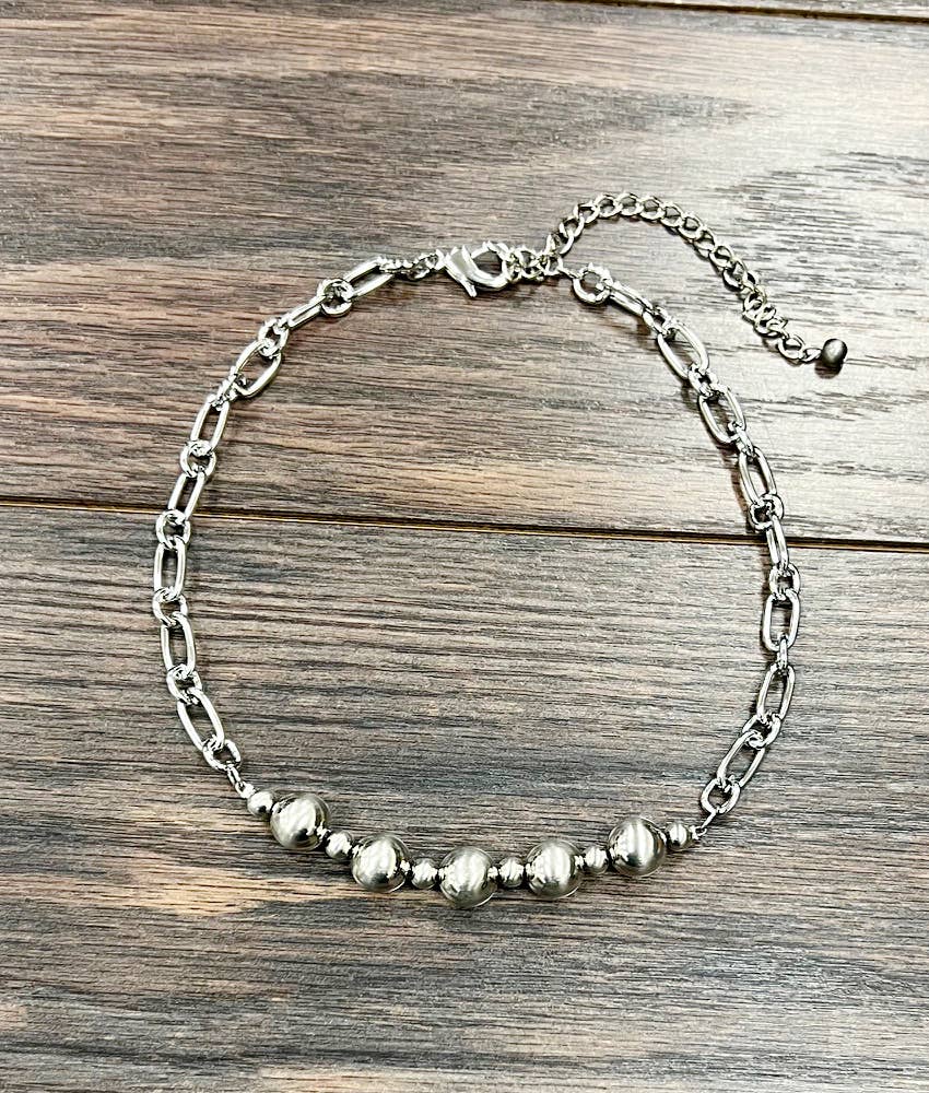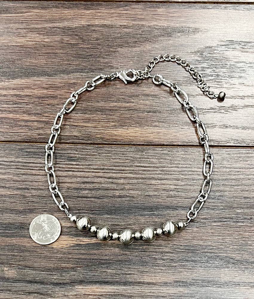 15" to 20" Long, Handmade Silver Navajo Bead Necklace