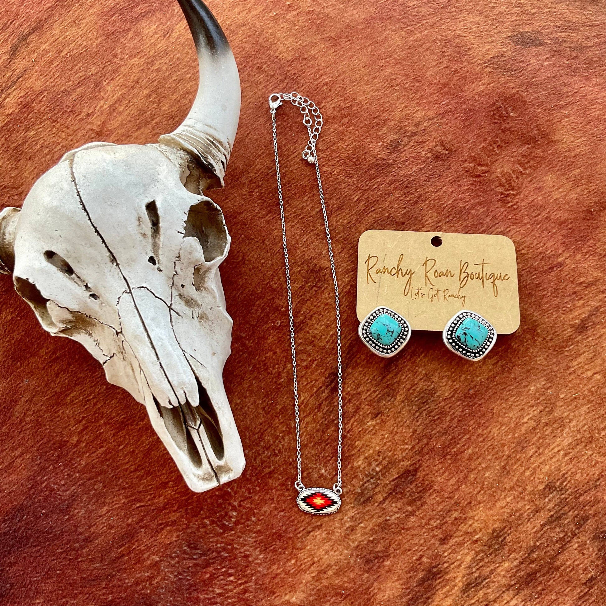 This classic Aztec Pattern Oval Necklace is the perfect way to add a touch of Western style to any look. Crafted from silver-tone metal, this 18" plus 3" necklace is accented with a bold aztec pattern and red accents for a boho flair.