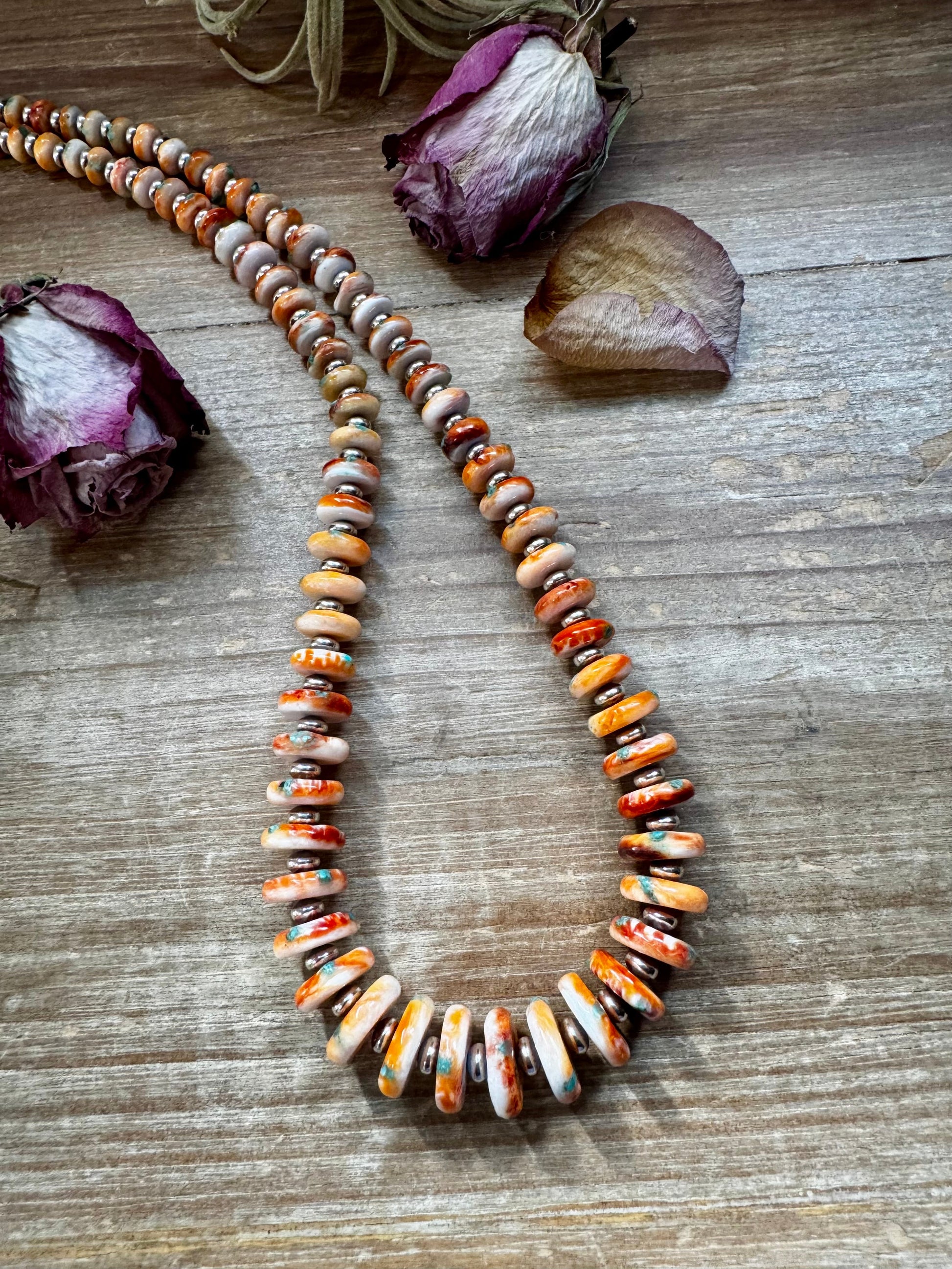 NFR Collection Necklace – Spiny Oyster & Turquoise with 6mm Sterling Silver Pearls – Handmade by The Bijoux FAB – 32.5"