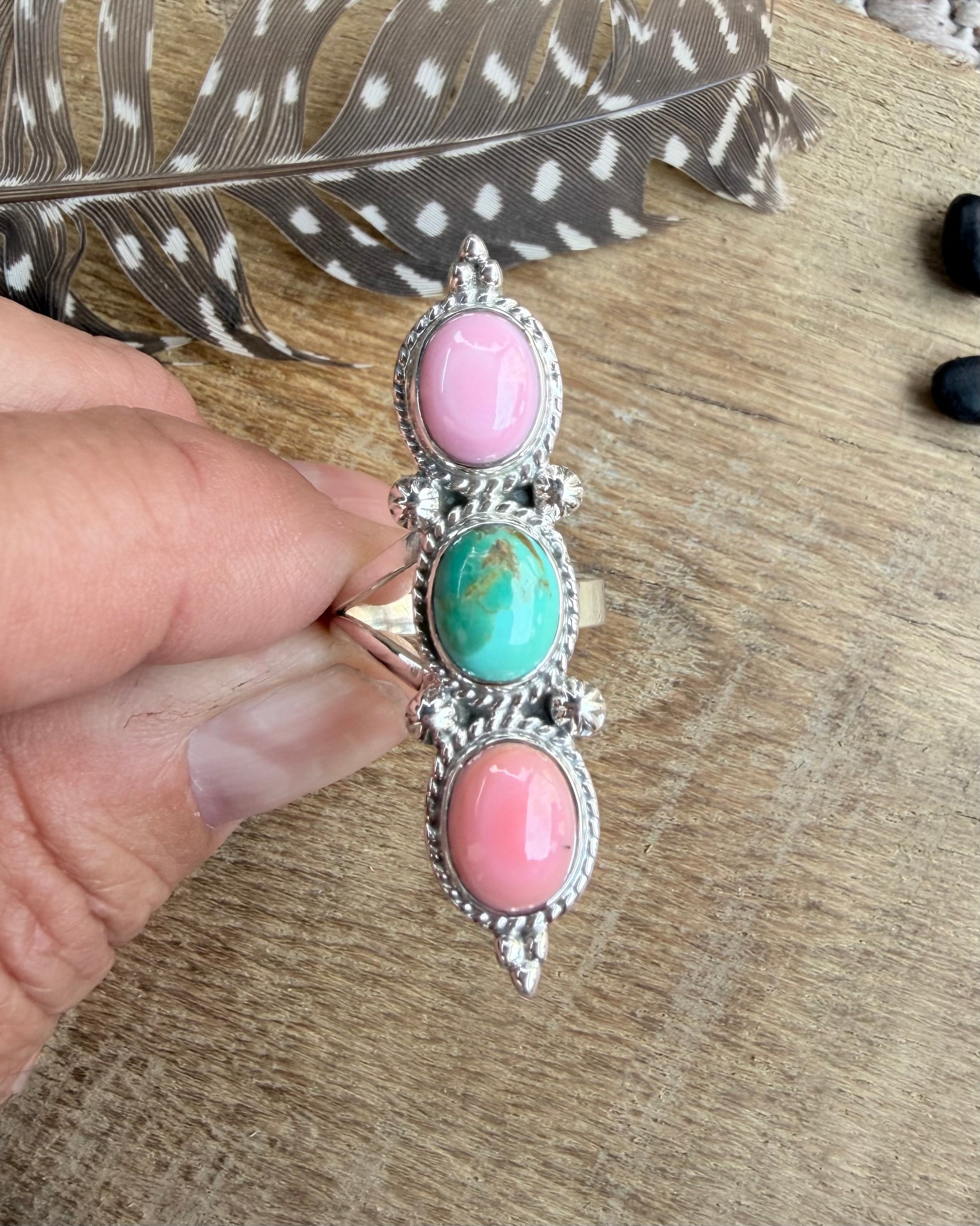 Pink Conch, Pink Opal and Sonoran Gold Adjustable Ring