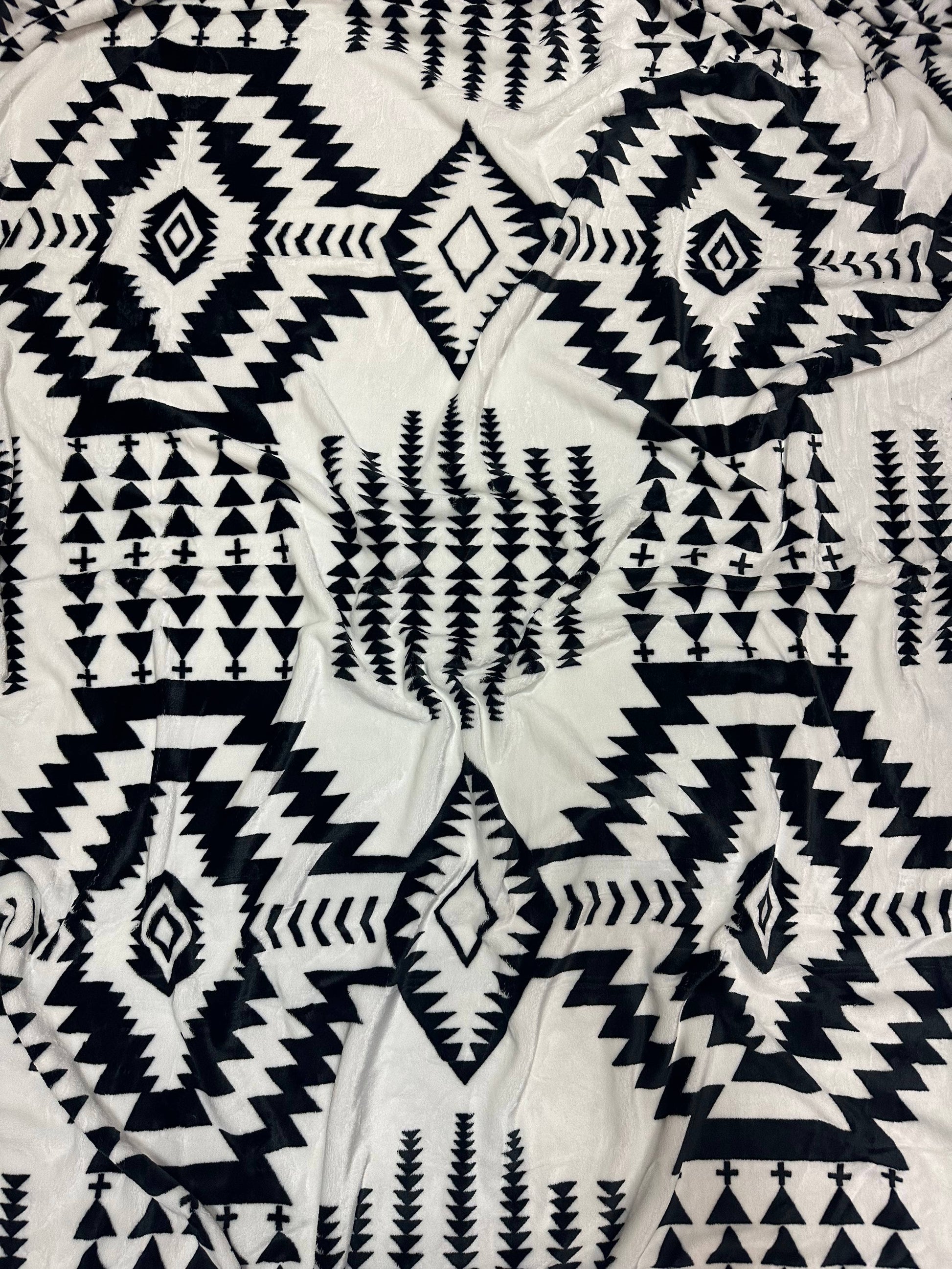 NEW BLACK & WHITE SOUTHWEST AZTEC LIGHTWEIGHT FLANNEL BLANKET