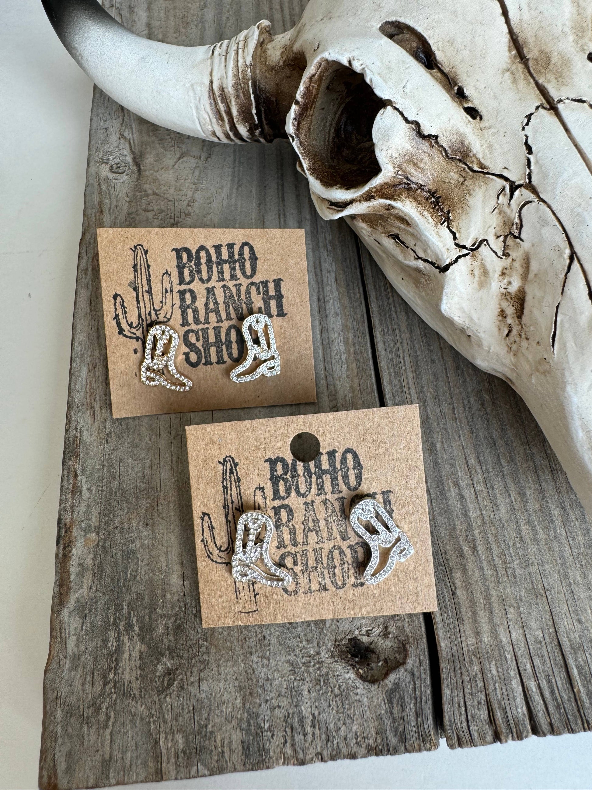Western cut out paved Stud earrings - cowboy boots hat bow