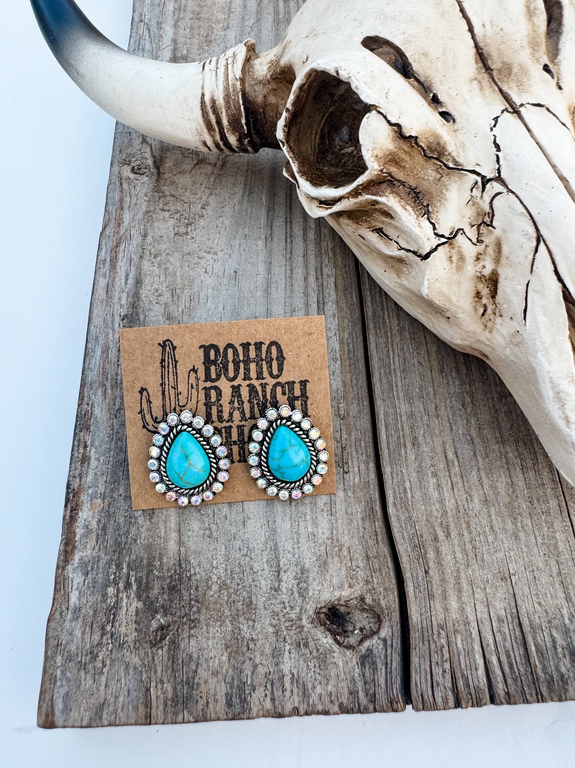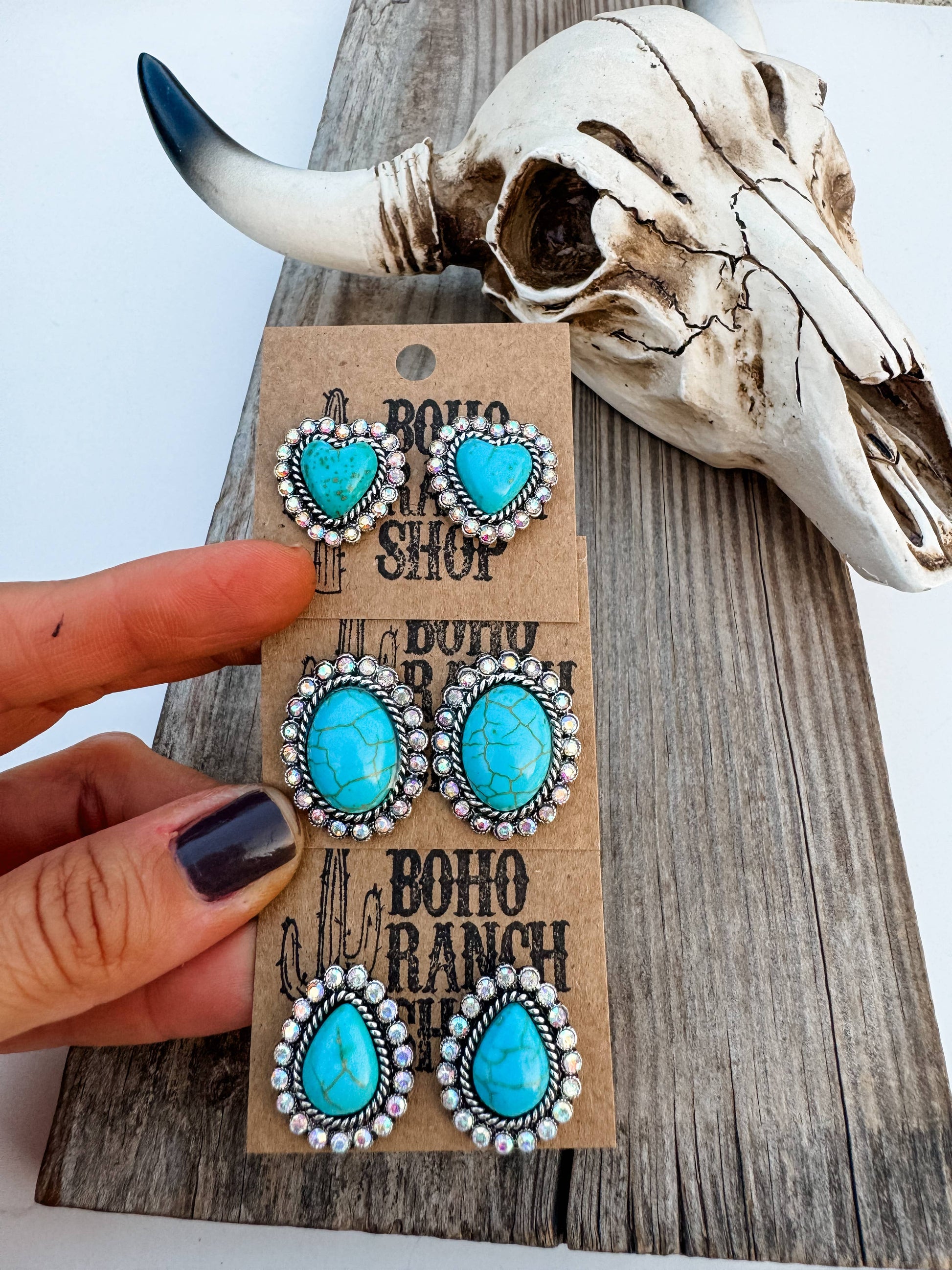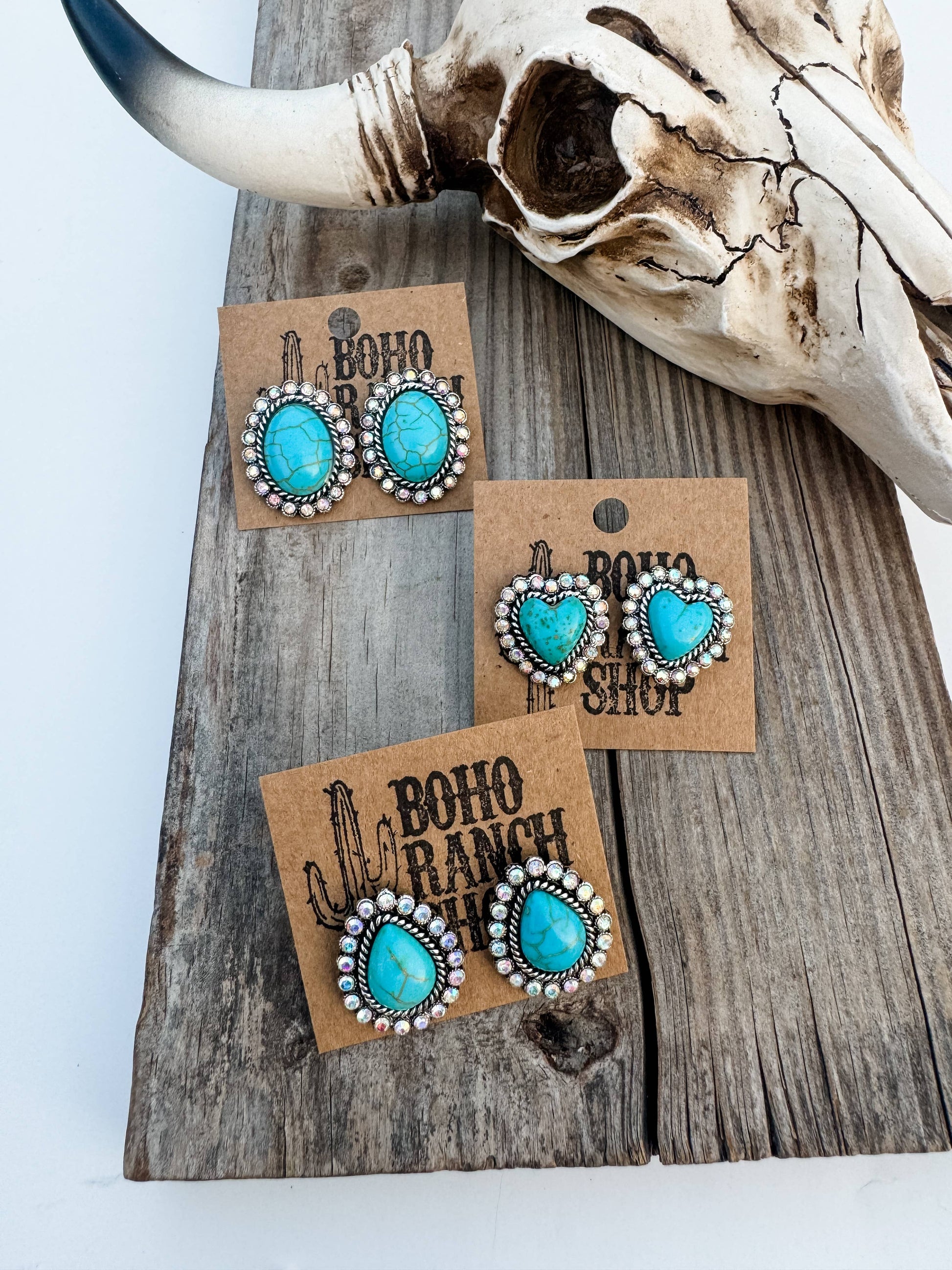Western Stone Drop Stud Earrings - heart oval teardrop