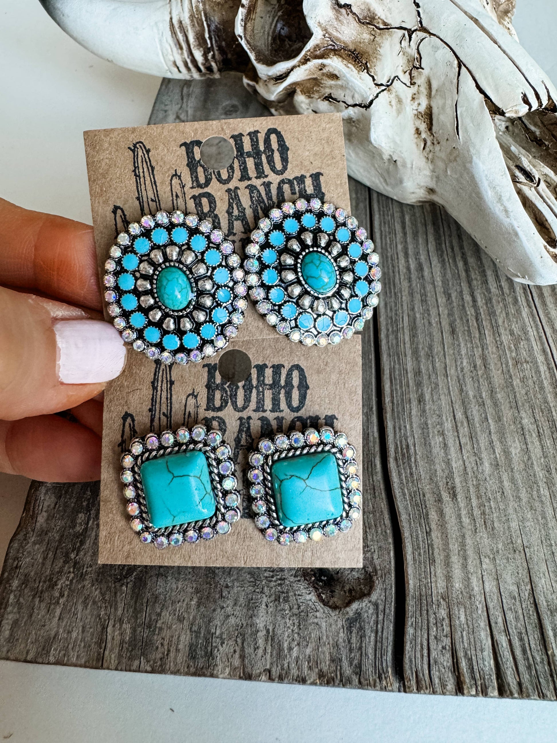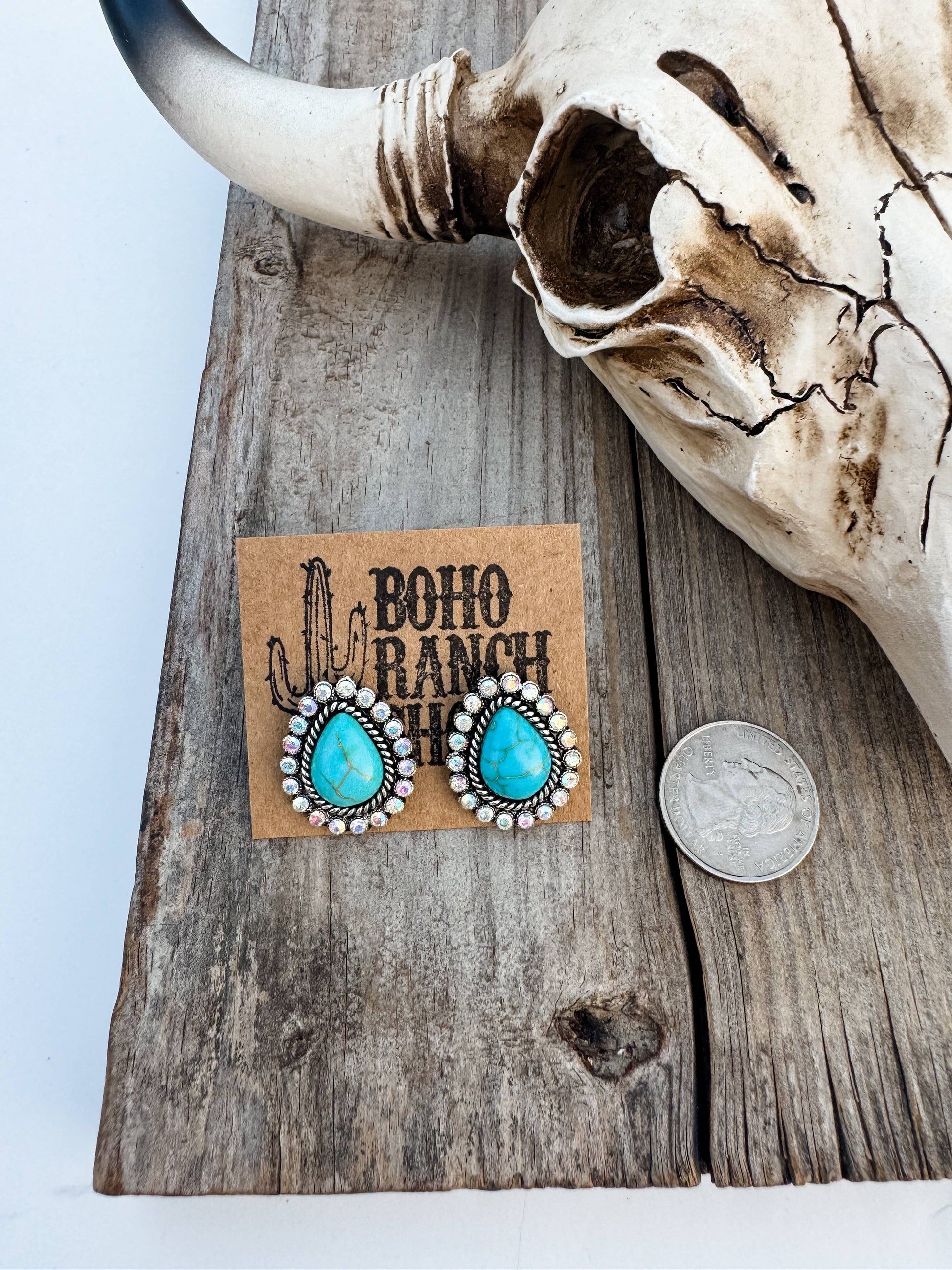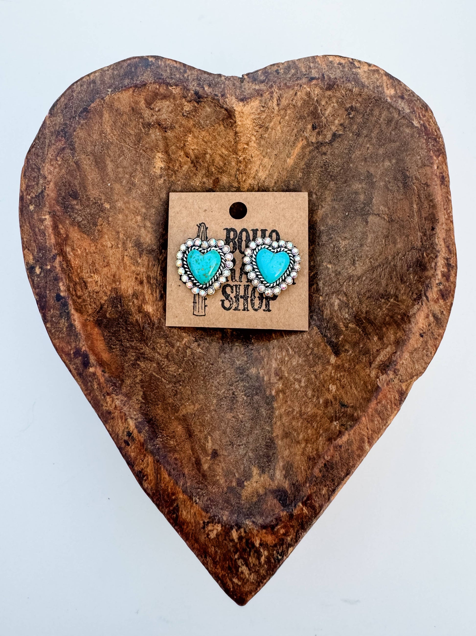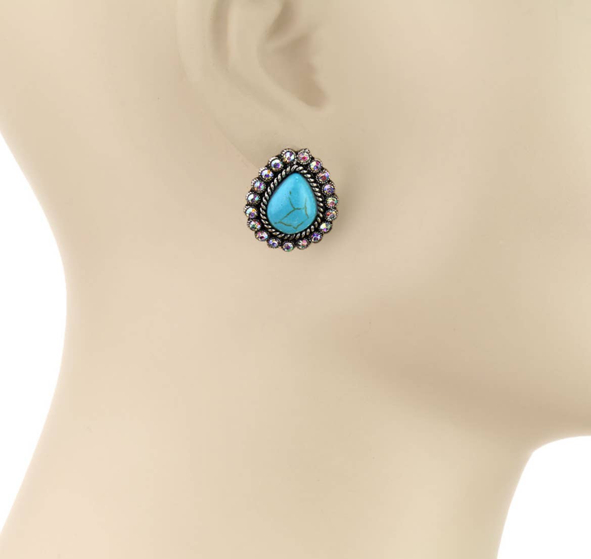 Western Stone Drop Stud Earrings - heart oval teardrop