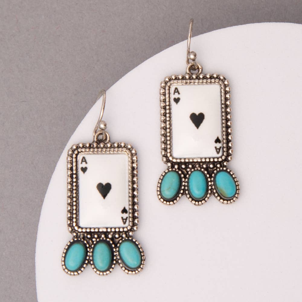 Western Turquoise Embellished Ace of Spades Poker Earrings