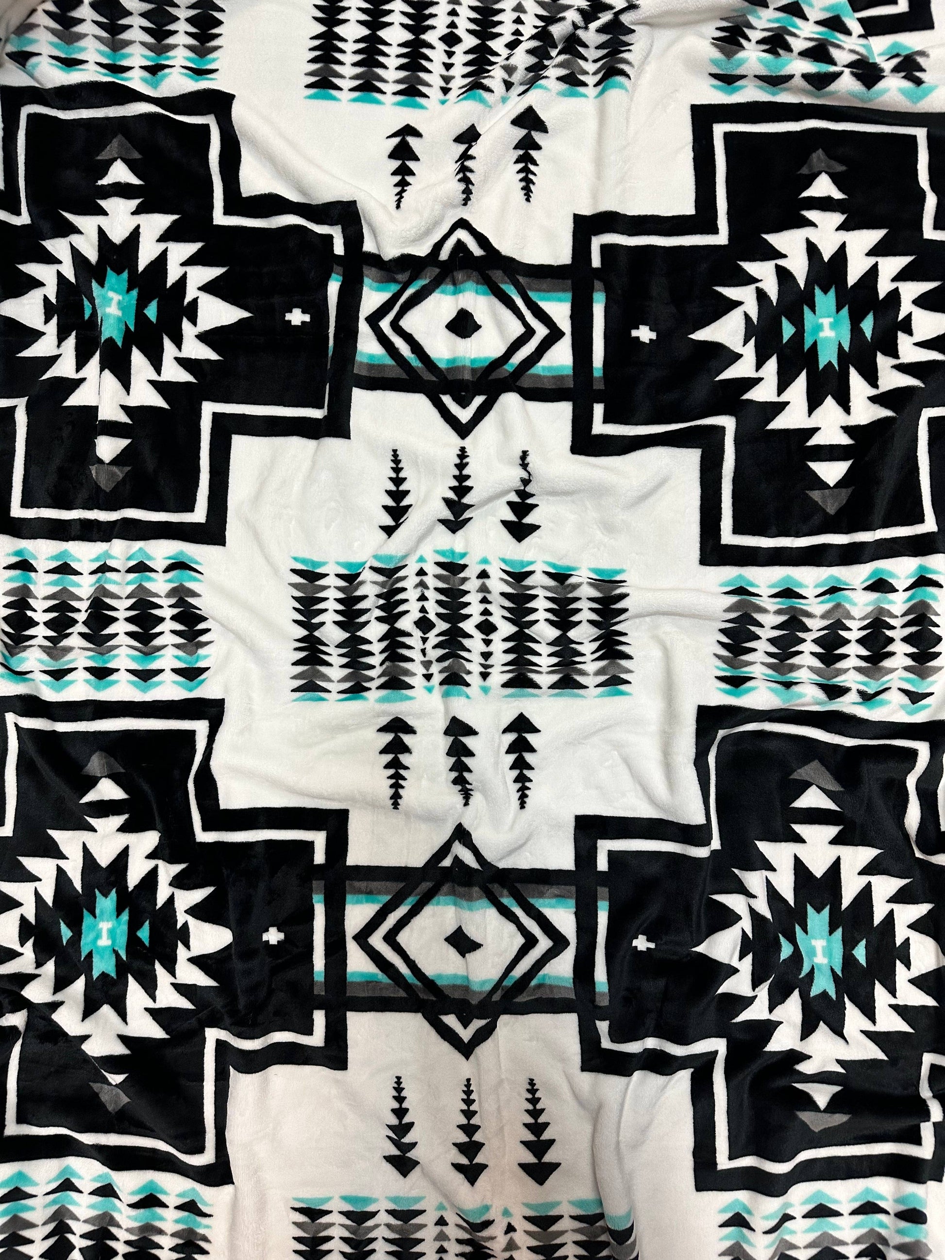 NEW WHITE & TURQUOISE SOUTHWEST AZTEC PRINT BLANKET