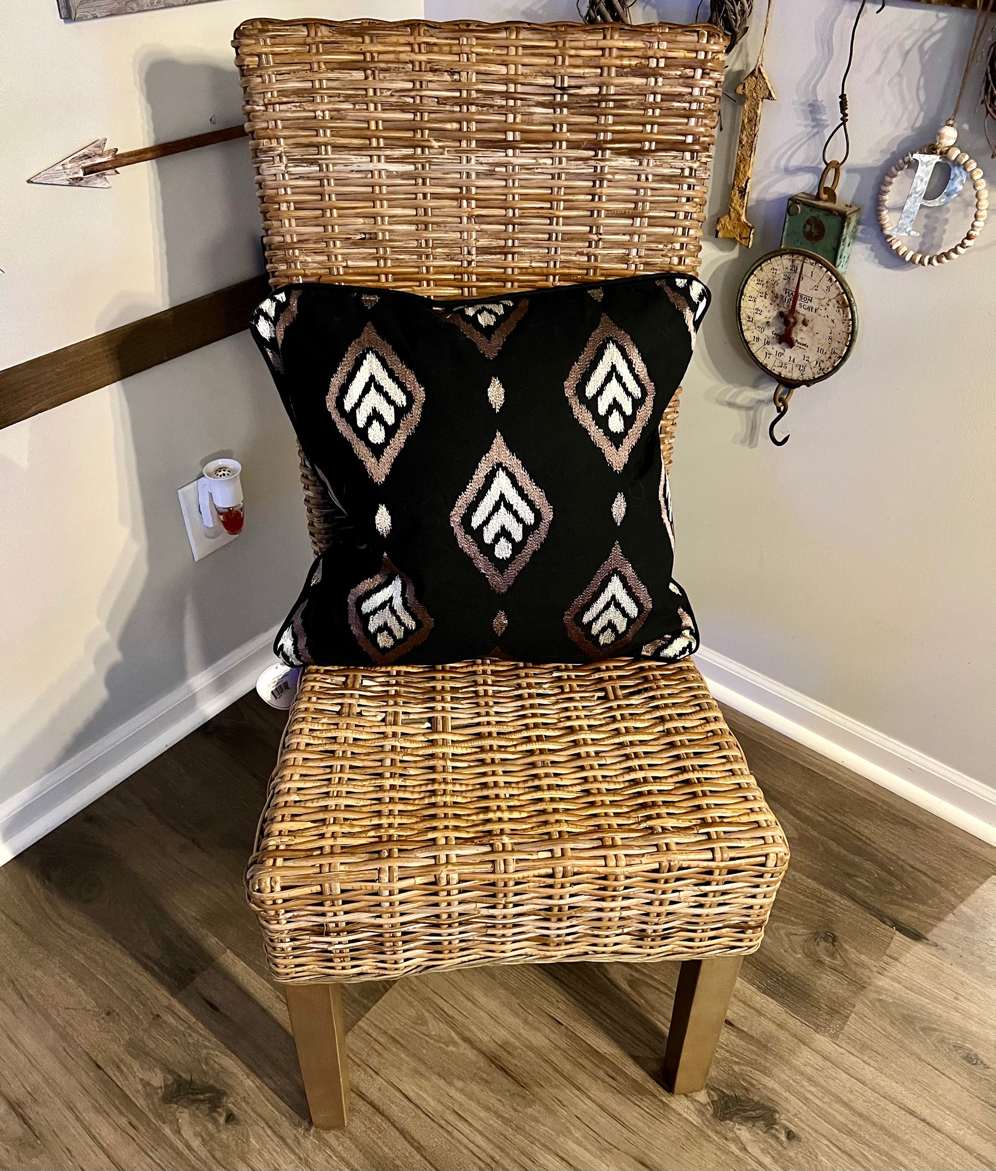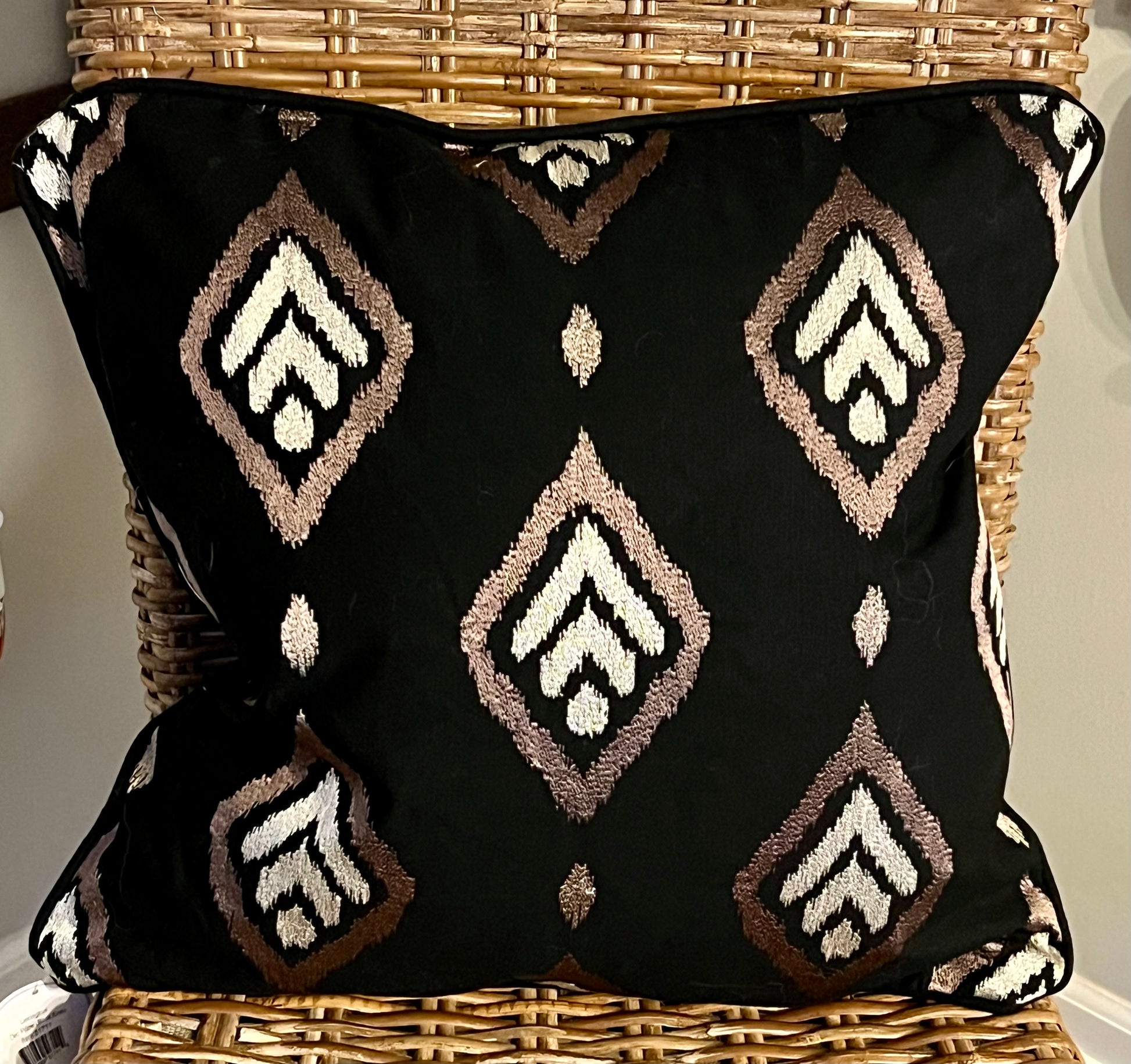 18”x18”. Black embroidered pillow. Zip off cover